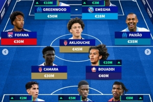 中场:马利克·福法纳(里昂,3000万)、拉米涅·卡马拉(摩纳哥,3000万)、阿克利乌舍(摩纳哥,4500万)、布阿迪(里尔,4000万)、伊戈尔·派尚(马赛,3500万)