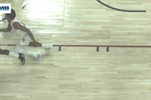 天眼视角回放阿门的发球前犯规:左腿的碰撞导致小哈达威倒地