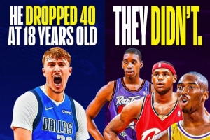 弗拉格(18岁360天)也成为唯一一个在18岁就砍下40+的NBA球员,即便是詹姆斯、科比和麦迪这样的高中生天赋球员在18岁时也没有达到过这一数据表现。