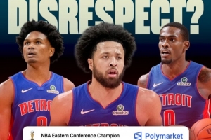 活塞队以21胜5负的战绩领跑东部,但据预测机构Polymarket预测,他们进入总决赛的概率仅为13% 😳