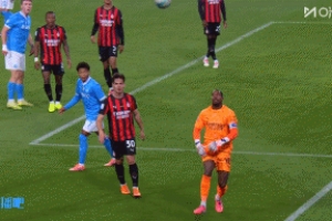 迈尼昂被波利塔诺阻挡,报复性打到后者头部,VAR介入无表示