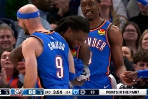 分差瞬间上双!乔接球三分&卡鲁索断球反击 雷霆连拿5分打停快船