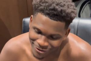 赛后,爱德华兹在更衣室接受了记者的采访。
