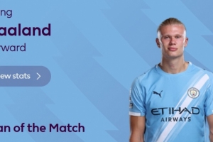 2射1传独造3球!英超官方:哈兰德当选曼城vs西汉姆联全场MVP
