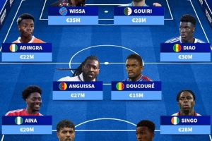 前锋:维萨(民主刚果,3500万)、古伊里(阿尔及利亚,2800万)