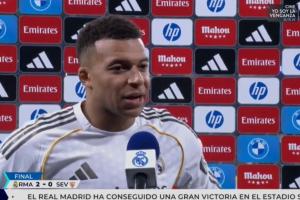 在追平C罗纪录后,姆巴佩做出了C罗标志性的“SIU”庆祝动作。姆巴佩赛后接受了皇马TV的采访。