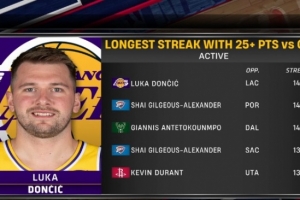 他太爱打快船了!东契奇VS快船已连续14场25+ 并列联盟现存最长