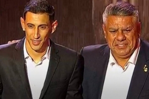 塔皮亚和迪马利亚一起上台领奖,还展示了印有迪马利亚名字的阿根廷国家队11号球衣。主持人提问,这是否暗示迪马利亚可能重返国家队参加2026年世界杯,塔皮亚主席笑着说:“让他自己好好考虑一下。”