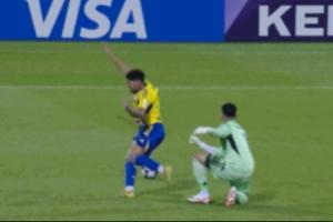 裤子都被扯坏了🤣亚冠门将逆天大脚抡空+拉拽吃红点,对手失点