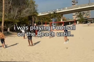 巴萨边锋亚马尔在迪拜度假,他来到海滩与孩子们一起踢球,给他们带来了惊喜和快乐。