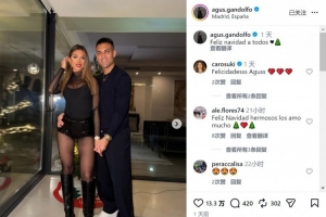 圣诞节之际,奥古斯蒂娜社媒晒出与劳塔罗的合照,定位地点为西班牙马德里,配文:“祝大家圣诞快乐。”