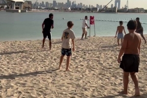 融入其中!亚马尔现身迪拜海滩,与孩子们一起踢球
