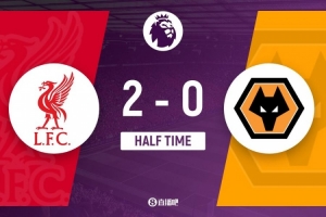 体育资讯12月27日讯 北京时间12月27日23:00,英超联赛第18轮利物浦迎战狼队的比赛在安菲尔德球场进行,上半场埃基蒂克兜射中柱,麦卡利斯特抽射中柱,弗林蓬助攻赫拉芬贝赫抽射破门,埃基蒂克助攻维尔茨打进红军首球,半场结束,利物浦2-0狼队。