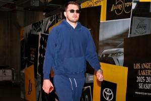 湖人官方晒球员入场:东契奇戴墨镜帅气逼人 老詹“吨吨桶”傍身