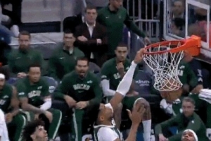 上来就这么凶!字母哥篮下左手单臂虐筐 又突破转身双手滑翔暴扣