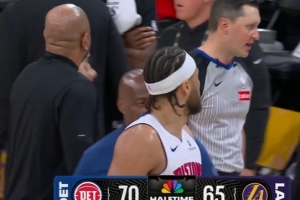 东契奇笑纳1分!康宁汉姆半场结束前0.5秒抱怨吃到技术犯规
