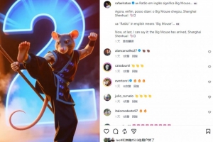 今日拉唐在社媒晒出一张老鼠为主题的海报纪念自己加盟申花,他写道:“我的姓拉唐,其意为‘大老鼠’。现在我终于能够说出这句话:‘大老鼠抵达上海申花!’”