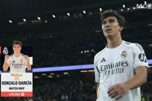 本场比赛贡萨洛上演帽子戏法,赛后他也当选西甲官方评选出的本场最佳球员。