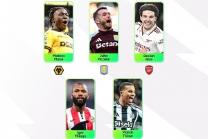 本轮英超最佳候选5人名单:赖斯、麦金、佳夫、伊戈尔、M·马内
