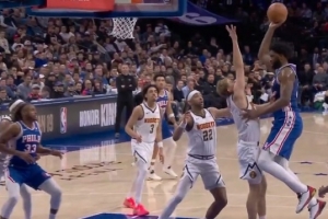 别别别...哥们好球啊!恩比德抹过防守不看筐瞎扔抛投 打板命中