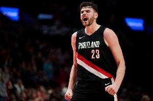 上半场,开拓者内线克林根表现出色,篮板依旧积极已经上双,在17分钟的时间里,投篮6中4,三分球3中2,拿到10分10篮板1助攻1盖帽的数据,正负值+15。