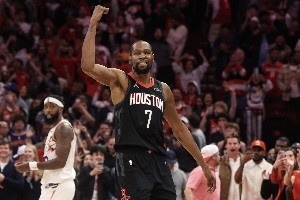 在比赛仅剩1.1秒时,杜兰特投中了一记决定胜负的关键进球,帮助火箭以100-97险胜太阳。当时,他在罗伊斯·奥尼尔的防守下接到边线发球,调整节奏运了两下球,随后冷静地干拔跳投出手,稳稳命中了这记关键远投。