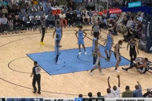 秀技术!文班亚马三分线外虚晃突破 急停再虚晃顶着防守上篮2+1!