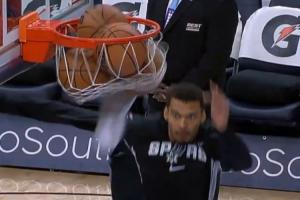容我想想……文班:我14岁时就曾一脚把卡在篮筐上的球踢了下来