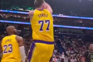 东契奇出手压哨三分,鹈鹕球迷:“垃圾不会进!”