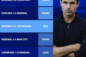 阿森纳本赛季英超对阵Big6战绩:胜曼联热刺,对利物浦1平1负