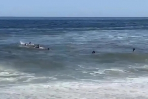 当地居民透露,救援者为几位正在换班间隙冲浪的救生员。现场视频显示,孩子们趴在一块冲浪板上,在浪涛中逐渐被推向岸边,靠近沙滩时另有其他当地人上前协助。德米凯利斯当时在板后帮助推扶,待全员安全上岸后,岸边响起了掌声。