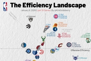 过去10场攻防效率:活塞盾坚绿军矛利 湖人攻防皆差 火箭攻守兼备
