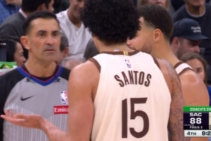 桑托斯篮板卡位时被吹犯规 勇士挑战成功&威少犯规 桑托斯被补吹T