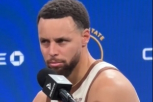 认真不了一点儿!库里接受采访时有记者铃声响 随即开始魔性扭动