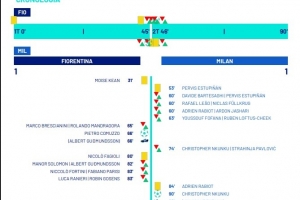 佛罗伦萨1-1米兰裁判报告显示,阿莱格里和瓦诺利遭到红牌驱逐