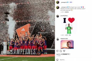 他也在赛后通过社媒晒出全队的捧杯照,并配文:“超级杯是我们的!💙❤️感谢大家的支持,加油!瞄准下一个冠军!🏆”