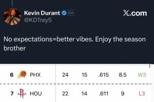 🤨KD赛季前嘲讽太阳:没有期待=氛围好!网友:报应来得好快