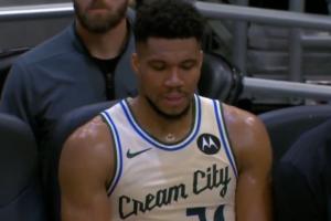 GIF-字母哥这是擦汗还是擦泪?情绪有些激动,深呼吸,不住摇头