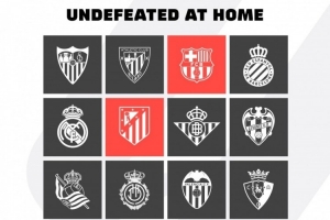 本赛季至今仅两队西甲主场仍不败:巴萨9战全胜、马竞8胜1平
