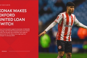 官方:布伦特福德中场科纳克租借加盟牛津联至本赛季结束