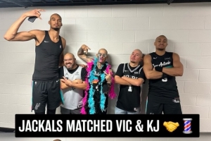 5个光头!文班亚马和凯尔登赛后与三位主场球迷团球迷合影