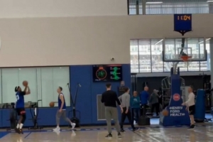目前归期未定!艾维手术后首次进行投篮训练 底角三分6中3