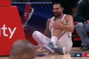 乌度卡透露:“亚当斯扭伤了脚踝,已经出现明显肿胀,没有骨折!”