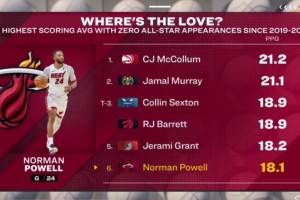 19-20赛季以来场均得分最高但从未入选全明星球员Top6:CJ、穆雷、塞克斯顿、巴雷特、格兰特、鲍威尔