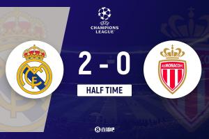 半场-皇马2-0摩纳哥 姆巴佩开场闪击+双响维尼修斯献助攻
