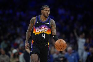 赛后,布克在接受采访时谈到了本场迎来复出的杰伦·格林:“我为他感到兴奋。他一直与我们并肩作战,我们见证了他一路的努力。在我看来,他的表现非常出色。他速度很快,能够为队友创造机会,并且在内线为我们增添了新的力量。他的速度确实很突出。”