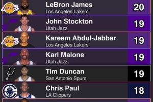 19次 —— 斯托克顿、马龙、贾巴尔、邓肯