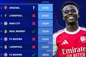 枪手能否坚持到最后?此前9支欧冠开局7连胜球队,仅拜仁皇马夺冠