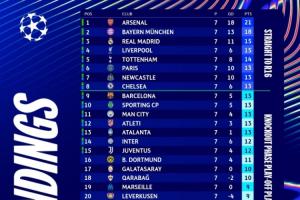 体育资讯01月22日讯 欧冠联赛阶段第7轮战罢,仅剩1轮的情况下仅有2队锁定直通名额。