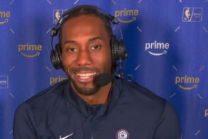 赛后,伦纳德在视频连线采访中谈到了他的出场时间限制,他说:“我知道我有时间限制,比赛还剩3分钟的时候,我一直在想,怎么还不让我上?”说完还笑了一下。
